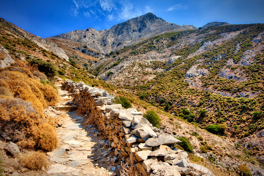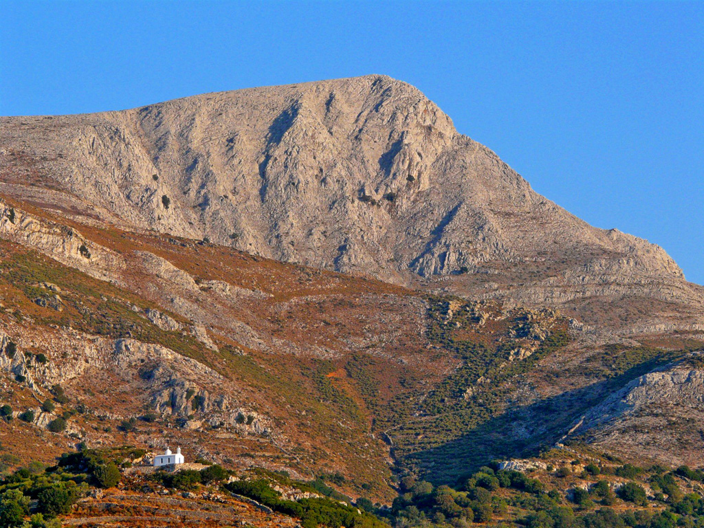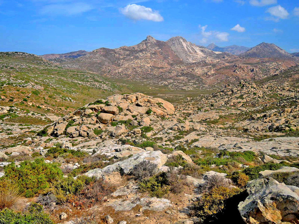 Στη Νάξο από βορρά προς νότο ορθώνεται μία ορεινή επιβλητική ράχη, σχεδόν ενιαία γυμνή και βραχώδης, με υπέροχες γεωλογικές μορφές κυρίως στην κεντρική πλευρά της, κοντά στην Κεραμωτή και στη νότια που μέρος της αποτελεί η κορυφή του Ζα (ή Ζευς) και το όρος Κόρωνος. Πρόκειται για ένα πλούσιο γεωλογικό πάρκο από κρυσταλλοσχιστώδη πετρώματα κυρίως κρυσταλλοπαγείς σχιστόλιθοι, γνεύσιοι και μάρμαρα σε εναλλασσόμενα στρώματα με όγκους γρανίτη αλλά και το σπάνιο ορυκτό της σμύριδας που δεν συναντάται σε κανένα άλλο σημείο του πλανήτη με τόση καθαρότητα. Η Κορυφή του Ζα είναι η ψηλότερη σε όλες τις Κυκλάδες και μας προσφέρει μοναδική θέα.