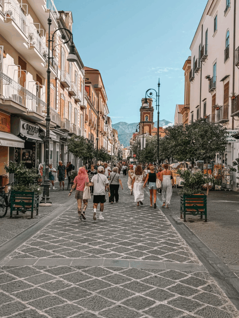 Το καλοκαίρι, το Σορέντο ζει στον πιο όμορφο ρυθμό του. Τα σοκάκια γεμίζουν με κόσμο, οι πλατείες ζωντανεύουν και η πόλη αποκτά μια κοσμοπολίτικη αλλά ταυτόχρονα χαλαρή ενέργεια. Τα βράδια έχουν ιδιαίτερη σημασία: μουσικές, φώτα, ανοιχτά εστιατόρια και η αίσθηση ότι όλη η πόλη κινείται γύρω από τη θάλασσα και τη θέα. Οι βόλτες στο κέντρο, οι στάσεις για aperitivo και τα δείπνα με φόντο το ηλιοβασίλεμα είναι μέρος μιας καθημερινότητας που μοιάζει σχεδόν τελετουργική. Ταυτόχρονα, το Σορέντο διατηρεί τον αυθεντικό του χαρακτήρα. Δεν είναι μόνο ένας όμορφος προορισμός, αλλά ένα σημείο όπου συνυπάρχουν η ιστορία, η φύση και η καθημερινή ζωή των κατοίκων. Οι κήποι με τα λεμονόδεντρα, οι μικρές γειτονιές και η επαφή με τη θάλασσα δημιουργούν μια εμπειρία που δεν είναι απλώς εικόνα, αλλά συναίσθημα — μια ήρεμη, κομψή και βαθιά μεσογειακή εμπειρία.