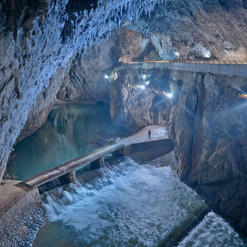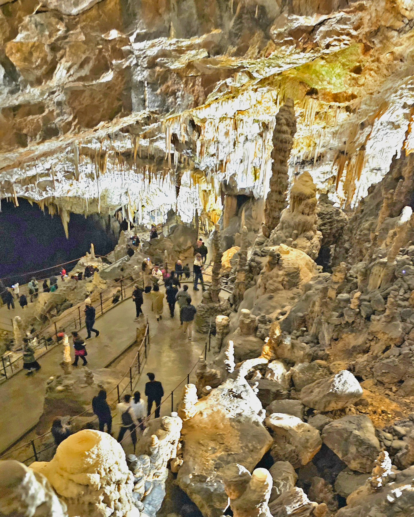 🕳️ Θα κατεβούμε επίσης στον υπόγειο κόσμο του εντυπωσιακού Σπηλαίου Ποστόινα (Postojna Cave), ενός από τα μεγαλύτερα καρστικά σπήλαια της Ευρώπης, και θα περιπλανηθούμε σε εντυπωσιακούς θαλάμους γεμάτους σταλακτίτες και σταλαγμίτες.