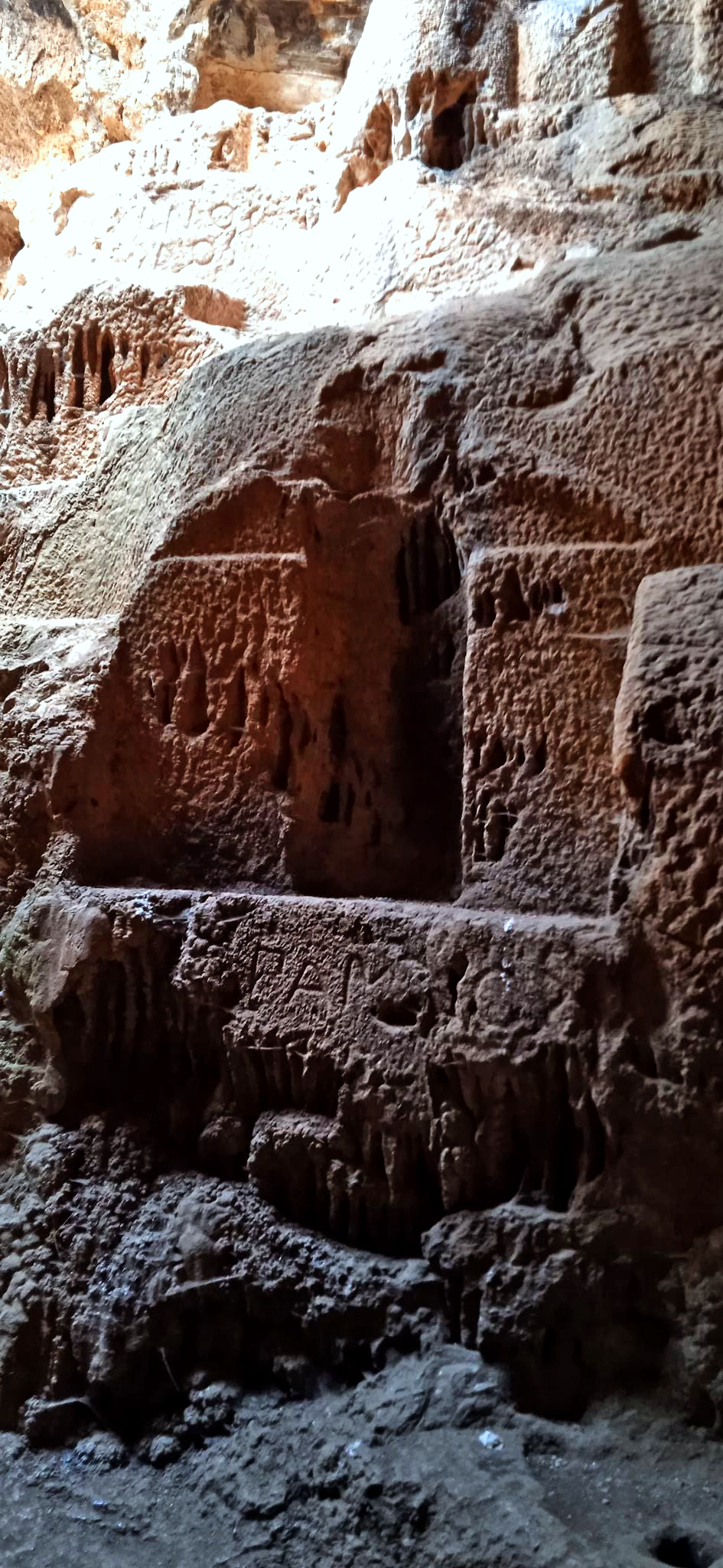 Σύμφωνα με τις επιγραφές, διαμορφώθηκε σε ιερό από τον Θηραίο γλύπτη Αρχέδημο, που λάξευσε σκαλοπάτια, επιγραφές και ανάγλυφα ✒️.