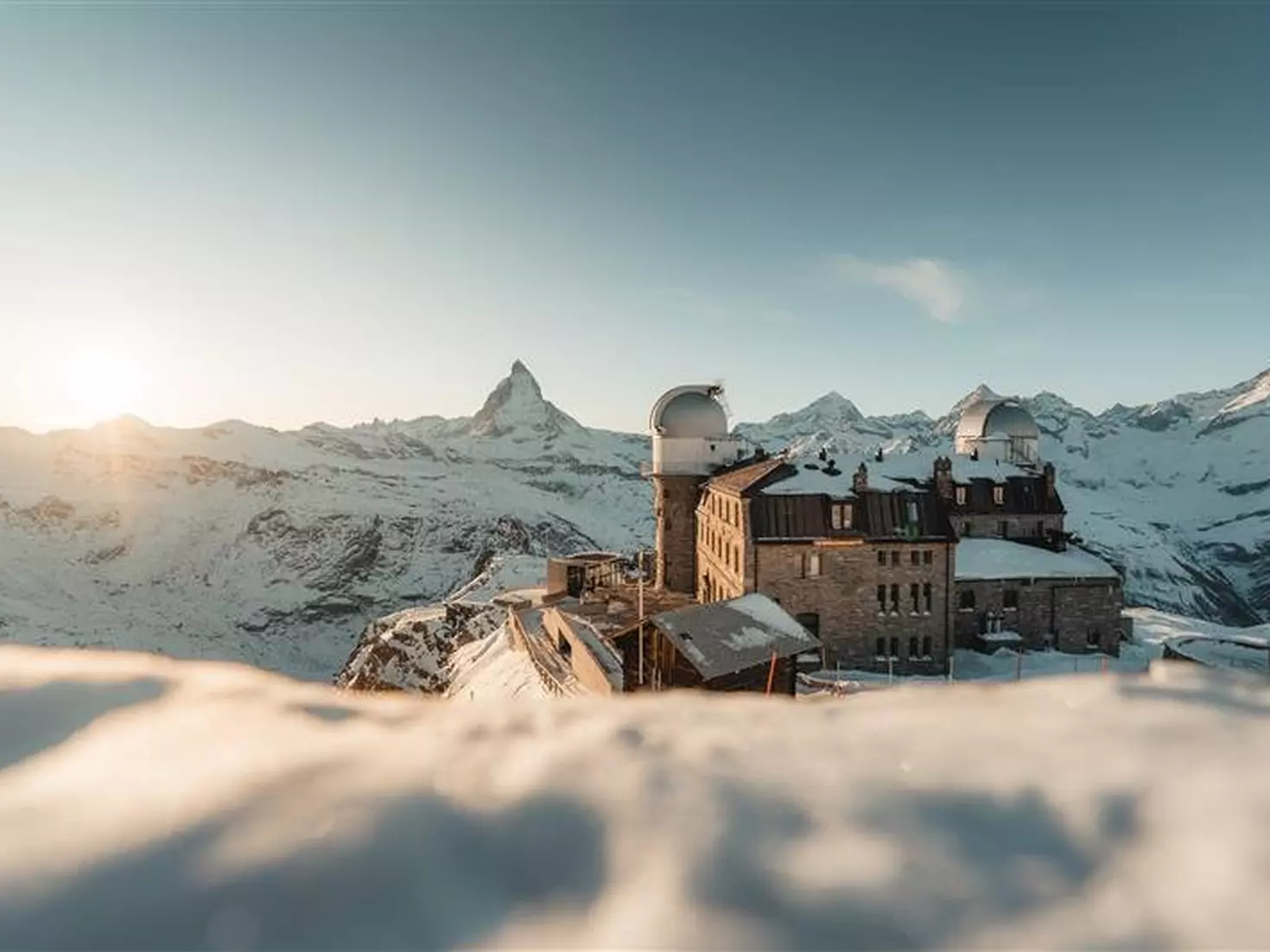 🚞 Η ανάβαση στο Gornergrat, μέσα στο χιονισμένο βασίλειο των 3.000 μέτρων, είναι εμπειρία που δύσκολα περιγράφεται. Το οδοντωτό τρένο ανεβαίνει αργά, σχεδόν τελετουργικά, και κάθε μέτρο πιο ψηλά ανοίγει ένα νέο πανόραμα: παγετώνες που απλώνονται σαν λευκές θάλασσες, κορυφές σαν αιώνιοι φύλακες, μια σιωπή που κάνει το τοπίο να μοιάζει ιερό. Στην κορυφή, η αίσθηση είναι πως αγγίζεις τον ουρανό — πως βρίσκεσαι στο σύνορο ανάμεσα στον άνθρωπο και το μεγαλείο της φύσης.