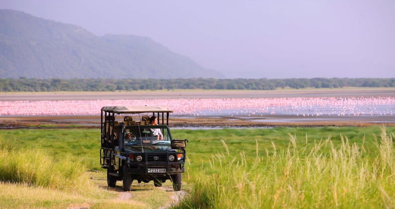 Η διαδρομή συνεχίζεται κατά μήκος της λίμνης, όπου παρατηρούμε μεγάλους πληθυσμούς φλαμίνγκο, πελεκάνους και δεκάδες άλλα είδη υδρόβιων και μεταναστευτικών πουλιών, που συγκεντρώνονται εδώ ανάλογα με την εποχή. Παράλληλα, το πάρκο φιλοξενεί μεγάλους πληθυσμούς ελεφάντων, καμηλοπαρδάλεων, ζέβρων, βουβαλιών και πιθήκων, προσφέροντας πλούσιες εικόνες άγριας ζωής σε μικρή απόσταση.