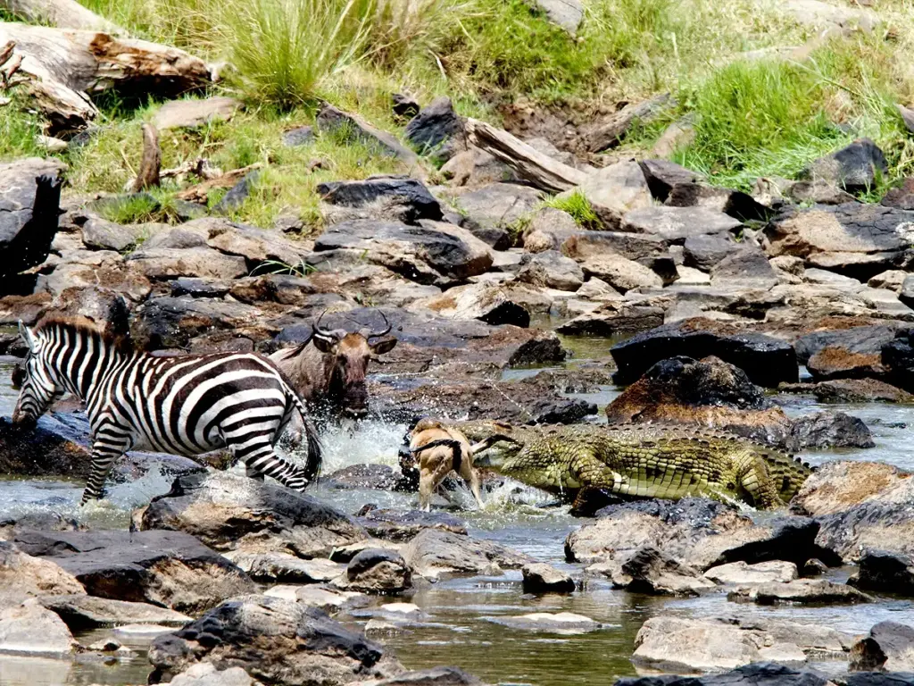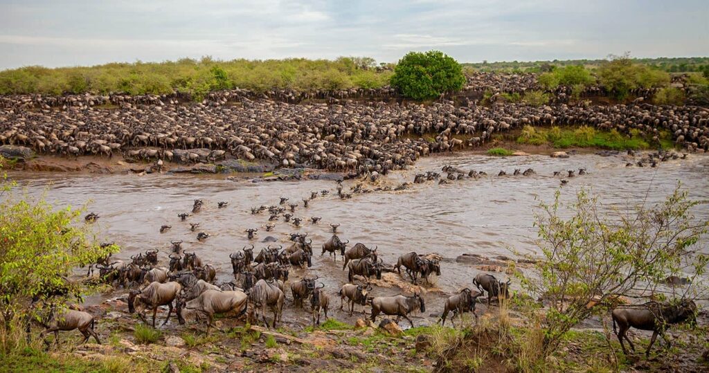 Ο ποταμός Μάρα αποτελεί το πιο κρίσιμο και επικίνδυνο φυσικό εμπόδιο αυτής της πορείας. Τα ζώα συγκεντρώνονται στις όχθες του ποταμού και, συχνά μετά από ώρες ή και ημέρες αναμονής, επιχειρούν τη διάσχιση των νερών του, όπου τους περιμένουν ισχυρά ρεύματα και κροκόδειλοι. Το φαινόμενο αυτό δεν είναι προβλέψιμο ούτε εγγυημένο σε συγκεκριμένη ώρα ή ημέρα, όμως η παραμονή στην περιοχή αυξάνει σημαντικά τις πιθανότητες να γίνουμε μάρτυρες ενός από τα πιο συγκλονιστικά θεάματα της άγριας φύσης.