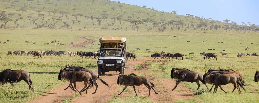 Η εμπειρία εδώ διαφέρει αισθητά από τις προηγούμενες ημέρες. Το σαφάρι δεν είναι απλώς μια διαδρομή, αλλά μια διαδικασία παρατήρησης και υπομονής. Τα κοπάδια των γκνου και των ζεβρών συγκεντρώνονται κοντά στις όχθες του ποταμού, κινούνται νευρικά, απομακρύνονται και επιστρέφουν ξανά, μέχρι τη στιγμή που, απρόβλεπτα, επιχειρούν τη διάσχιση. Αυτή η αναμονή αποτελεί κομμάτι της αυθεντικής εμπειρίας και κάνει κάθε πέρασμα ακόμη πιο συγκλονιστικό.